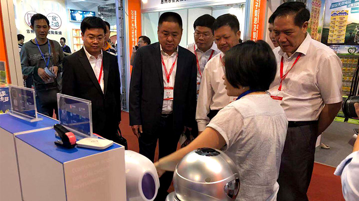 在智能高端装备展区,教育机器人的表演引起了现场观众的好奇心,纷纷前往观看咨询。