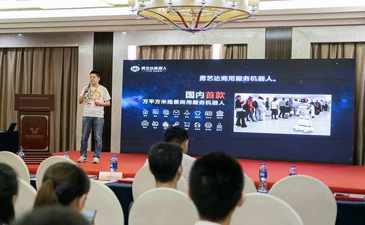 当日下午两点余,深圳勇艺达机器人有限公司副总裁贾湛在主论坛会场就《智能机器人在机场应用的实践分享》做了专题演讲:演讲提到勇艺达专注于安全教育和安全服务,作为一家人工智能大数据公司,在行业内深耕四年,公司的商用服务机器人已投入包括深圳机场在内各大机场实际运用。并介绍了该机器人在万平米级运用场景情况,实际运用和研发过程中遇到过的难点。深圳勇艺达机器人有限公司副总裁贾湛还向各位智能硬件业内人士详细介绍了小勇机器人使用的最先进的各种智能硬件情况。主题演讲结束后,提问环节参会人员互动踊跃。